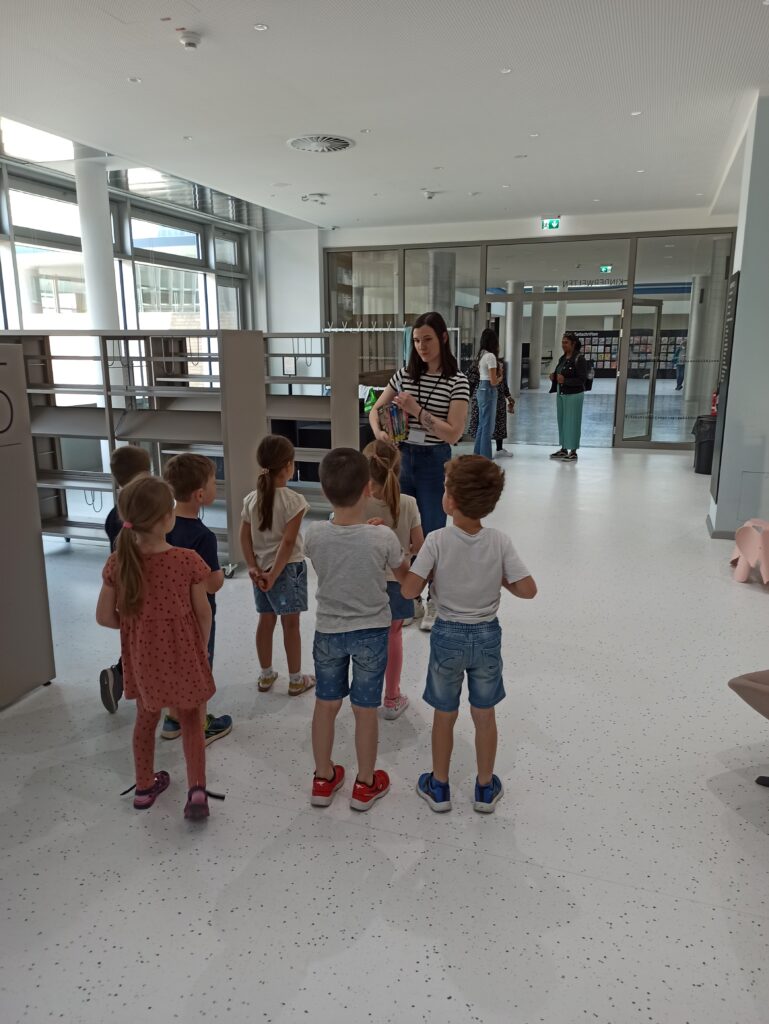 Am 13. Mai unternahmen die Vor-Schulkinder einen Ausflug zur Zentralbibliothek. Vom Förderverein hat der Lese-Opa die Gruppe begleitet und zum Abschluss die Kinder und Erzieherinnen zu einem Eis eingeladen.