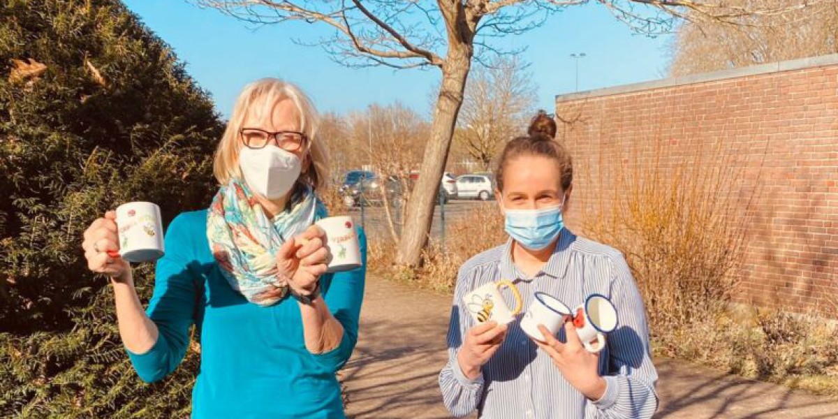 Vom Designentwurf bis zum Druck auf den Tassen wurde der Elternrat durch Familie Schnitzler unterstützt. So wurde die Aktion fast zum Selbstkostenpreis ermöglicht, sodass sich der Förderverein über einen Spendengewinn in Höhe von 336 Euro freuen konnte.